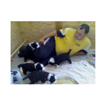 Was waren wir aufgeregt, endlich sollten unsere ersten Welpen auf den Weg gebracht werden. Eigentlich hatten wir als Vater unseren Django im Sinn, doch er hatte da andere Pläne und wollte einfach nicht. Also haben wir Angelika und Rolf angerufen, der sich kurzerhand mit Obelix auf den Weg zu uns machte. Bei der Geburt hatten wir ständig telefonischen Kontakt, denn obwohl wir an einigen Schulungen des CfBrH teilgenommen hatten und auch Erfahrung mit Tiergeburten hatten, waren wir sehr froh, so erfahrene Züchter an der Seite zu haben.