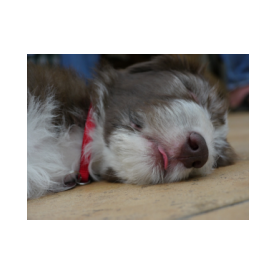 Louis ist der einzige braune Rüde im Wurf. Seine Familie hat sich sofort in ihn verliebt. Er sah immer ein bißchen lustig aus, als hätte er eine Brille an und irgendwie grimmig. Dabei war er das gar nicht. Er kam mit vollständig pigmentiertem Näschen zur Welt, war immer sehr agil und mutig.